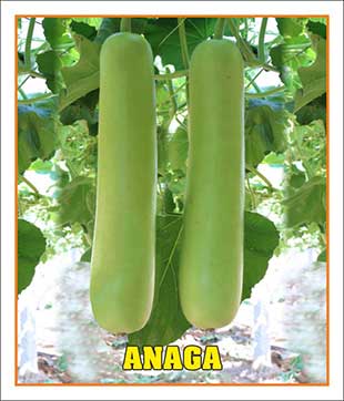 ANAGA Plant Habit : Vigorous and Early Fruit Length : 35 – 40 cm Fruit Color : Pale Green Fruit Maturity : 45 – 50 Days Fruit weight : 600 – 700 grams